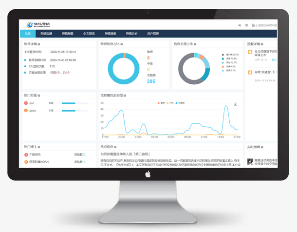全网舆情监测为核心,通过大数据计算,准确的预警危机事件。